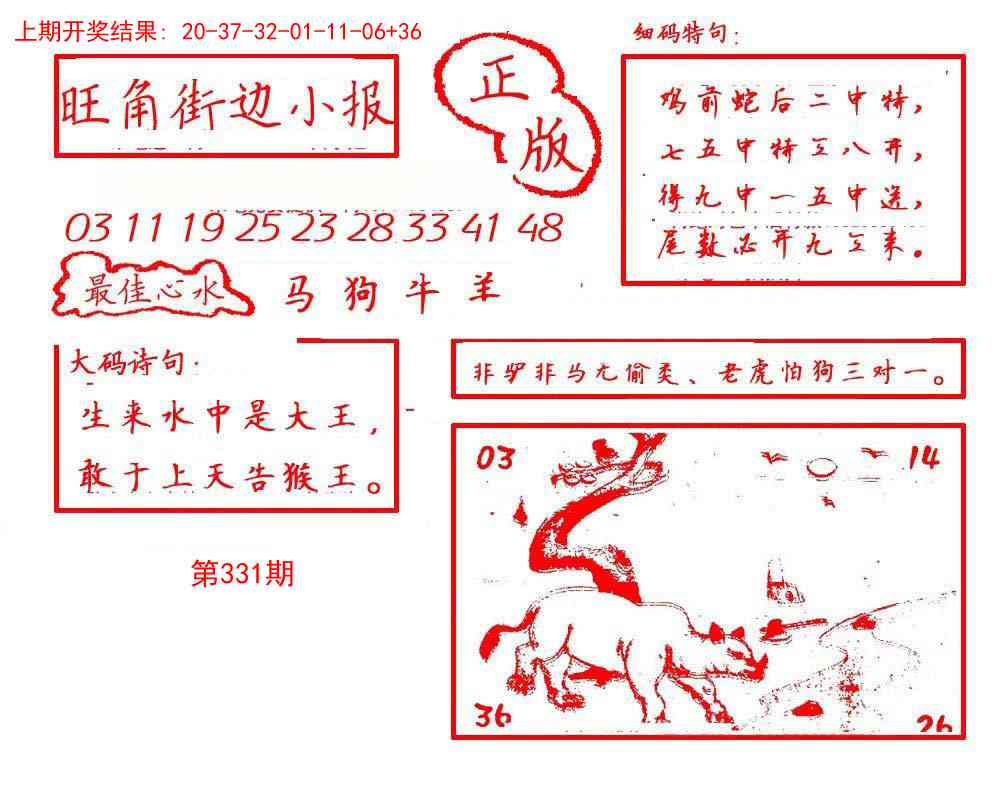 | 331期 | 三期内必出 | 狗-蛇-兔-羊 | 331期:龙26错 |